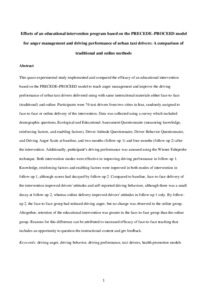 This quasi-experimental study implemented and compared the efficacy of an educational intervention based on the PRECEDE–PROCEED model to teach anger management and improve the driving performance of urban taxi drivers delivered using with same instructional materials either face-to-face (traditional) and online. Participants were 76 taxi drivers from two cities in Iran, randomly assigned to face-to-face or online delivery of the intervention. Data was collected using a survey which included demographic questions, Ecological and Educational Assessment Questionnaire (measuring knowledge, reinforcing factors, and enabling factors), Driver Attitude Questionnaire, Driver Behavior Questionnaire, and Driving Anger Scale at baseline, and two-months (follow-up 1) and four-months (follow-up 2) after the intervention. Additionally, participant’s driving performance was assessed using the Wiener Fahrprobe technique. Both intervention modes were effective in improving driving performance in follow-up 1. Knowledge, reinforcing factors and enabling factors were improved in both modes of intervention in follow-up 1, although scores had decayed by follow-up 2. Compared to baseline, face-to-face delivery of the intervention improved drivers' attitudes and self-reported driving behaviors, although there was a small decay at follow-up 2, whereas online delivery improved drivers' attitudes in follow-up 1 only. By follow-up 2, the face-to-face group had reduced driving anger, but no change was observed in the online group. Altogether, retention of the educational intervention was greater in the face-to-face group than the online group. Reasons for this difference can be attributed to increased efficacy of face-to-face teaching that includes an opportunity to question the instructional content and get feedback.