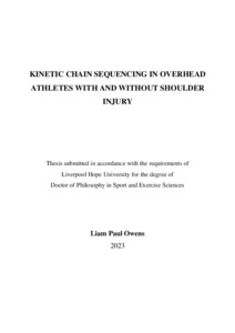 Owens, Liam Paul (2023) Kinetic Chain Sequencing in Overhead Athletes With and Without Shoulder Injury. Doctoral thesis, Liverpool Hope University.